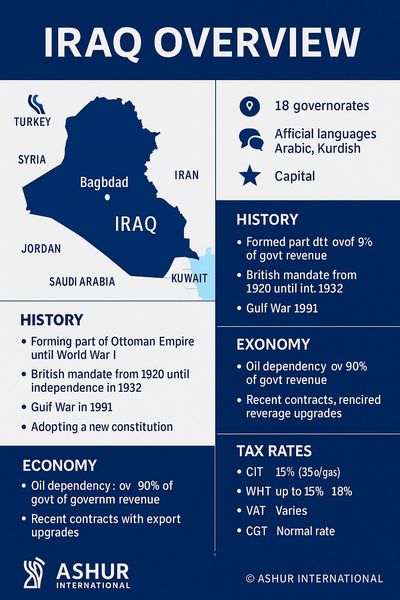For tailored advice on Iraq tax matters, please contact our team at ASHUR International. We work with companies, investors, and financial institutions to provide practical, reliable tax and advisory solutions across Iraq.